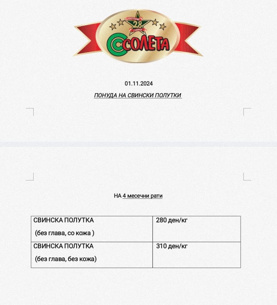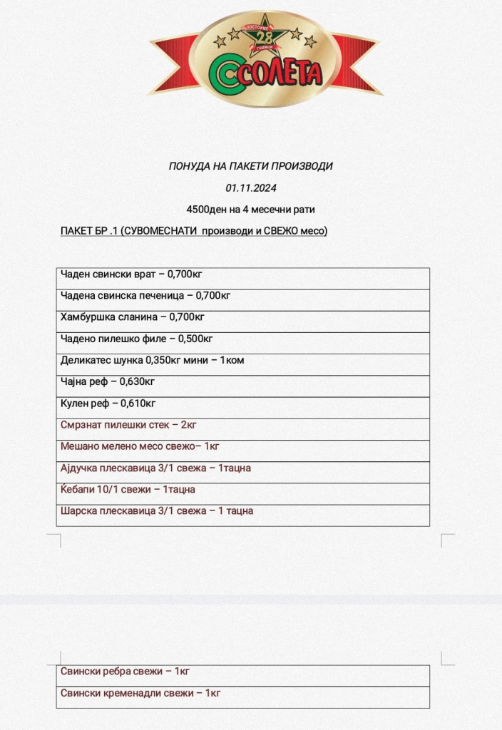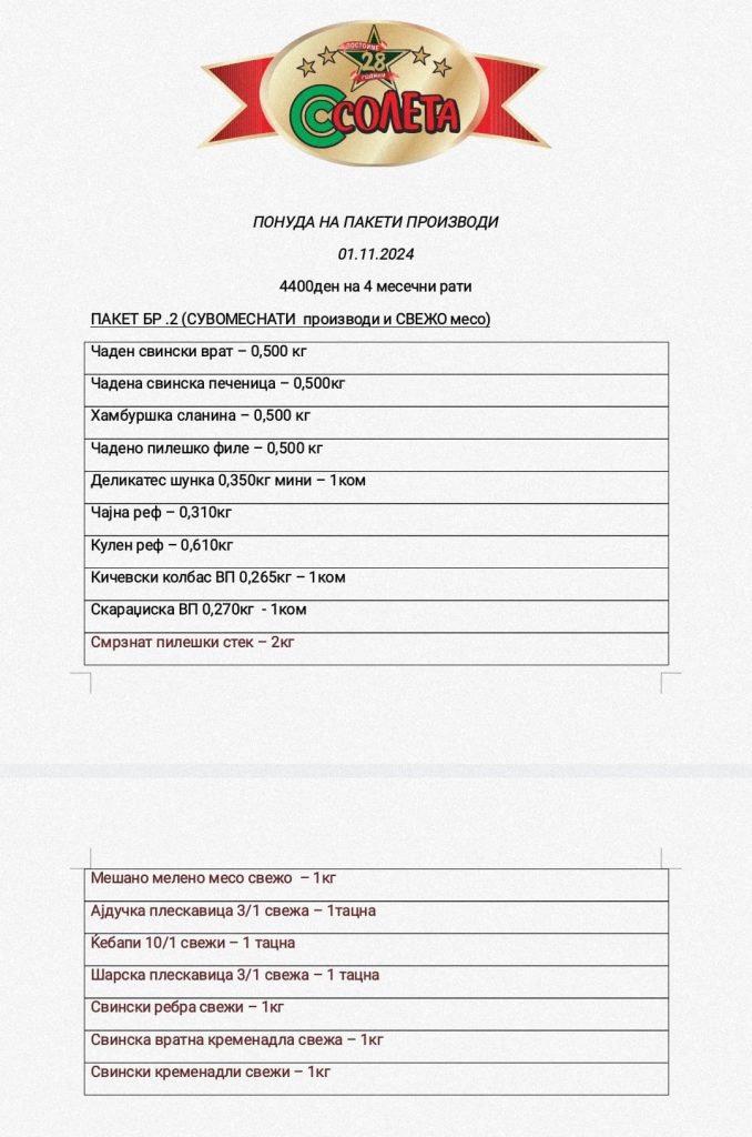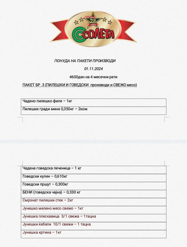 Со една потврда издадена и заверена од страна на работодавачот (потврда и дека е член на СПМ) може да се купува во една од продавниците на “СОЛЕТА” ДОО Скопје.